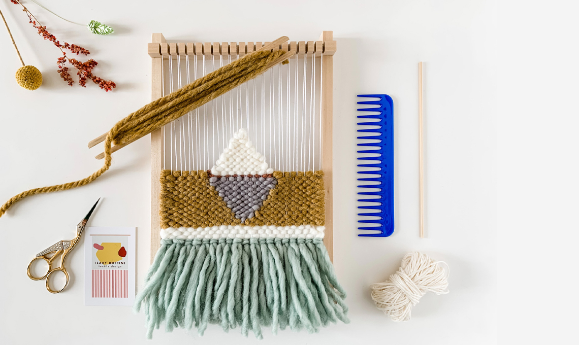 Ilary Bottini tiene corsi periodici, ma sul suo Etsy è disponibile anche un kit completo per iniziare a tessere nelle vacanze di Natale. etsy.com/it/shop/IlaryBottiniTextile