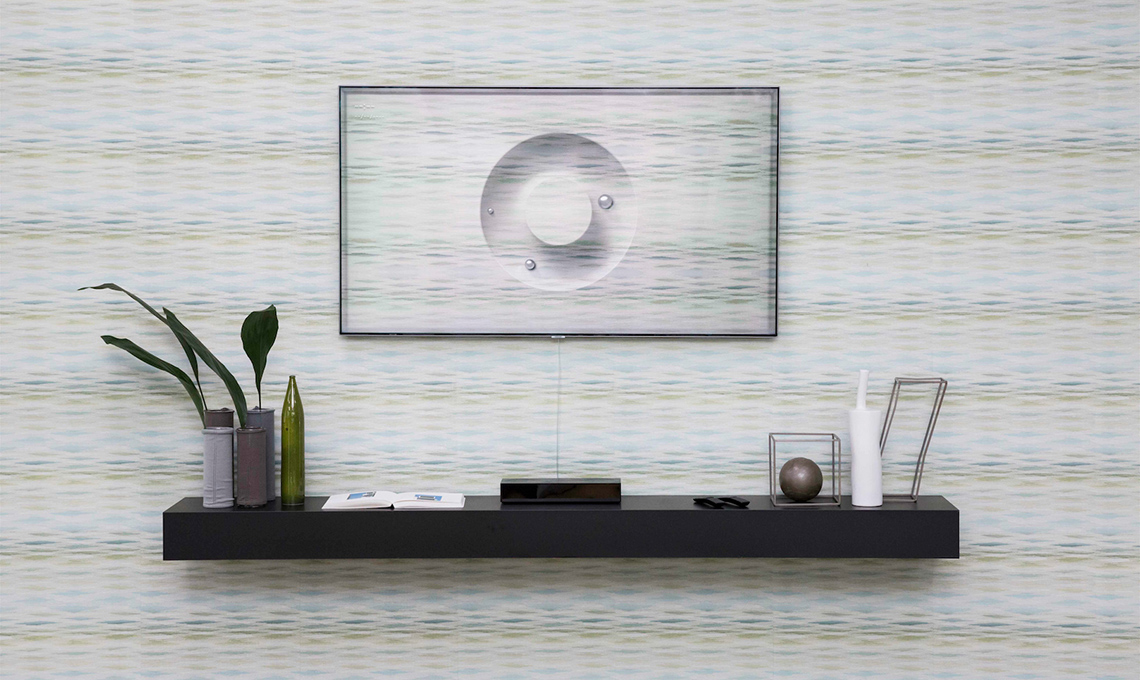 soluzione: la tv futuristica con una funzione che le permette di mimetizzarsi con la parete è dotata anche di un cavo sottile e trasparente in Teflon, anch’esso pensato per confondersi con la finitura del muro [tutto di Samsung]