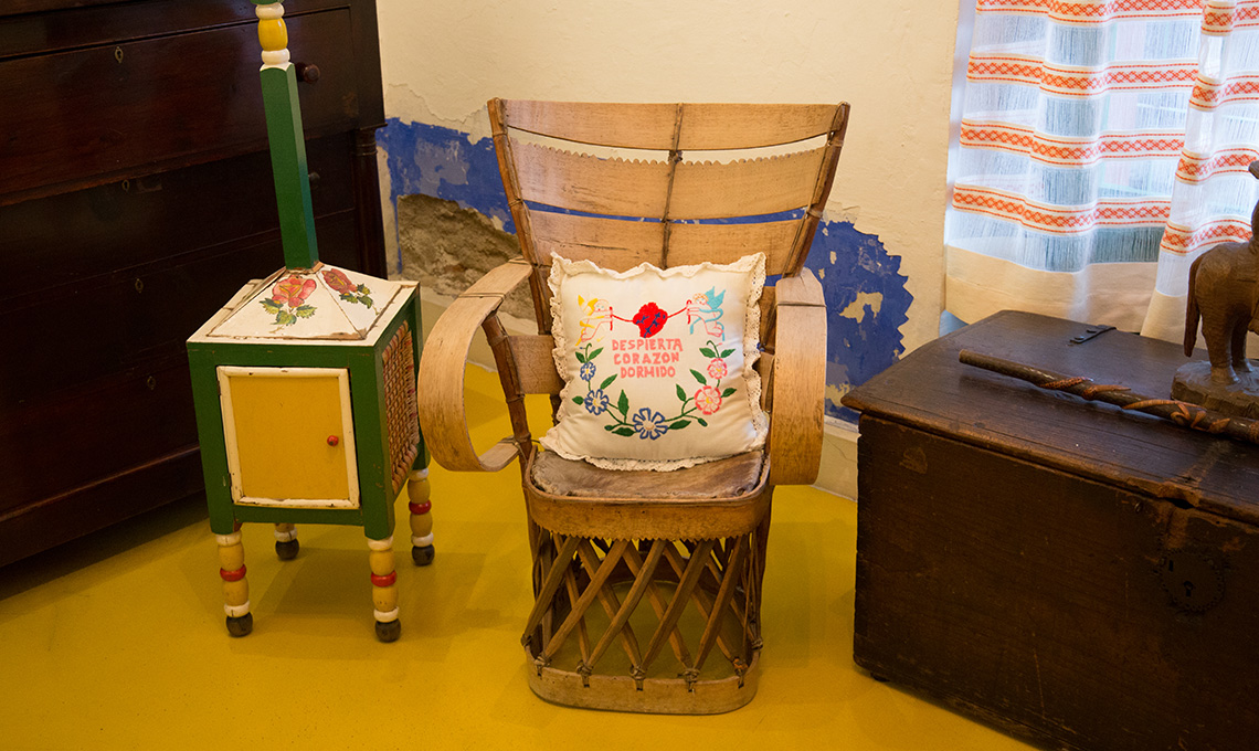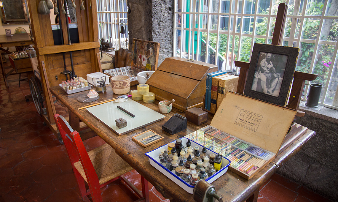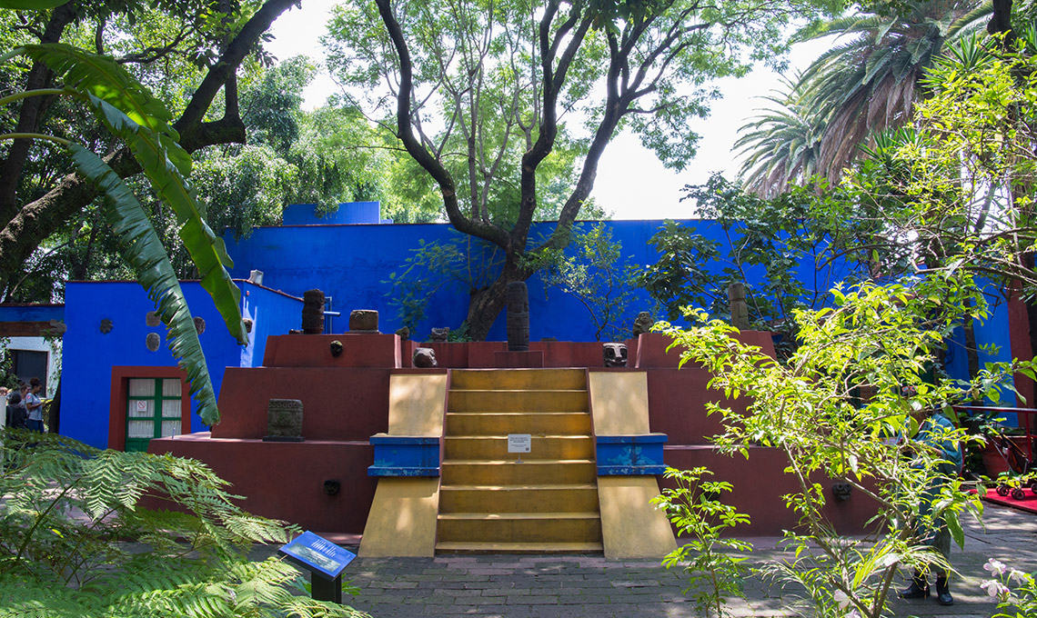 La casa è circondata da un grande recinto in stucco blu elettrico e rosso e custodisce gli studi dove questi due grandi pittori produssero gran parte della loro arte. Le pareti sono di un intenso blu Maya e molti sono i reperti di arte pre colombiana messicana che Frida e Diego collezionarono e che vengono esposti in alcune delle sale.