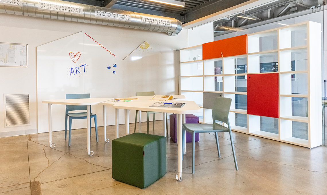 Nidi ha ideato e progettato un allestimento speciale per uno spazio altrettanto speciale, a livello di contenuto ed esperienze, come quello Kids di Pirelli HangarBicocca, dove bambini e ragazzi dai 4 ai 14 anni sono accompagnati alla scoperta dei linguaggi dell’arte contemporanea.