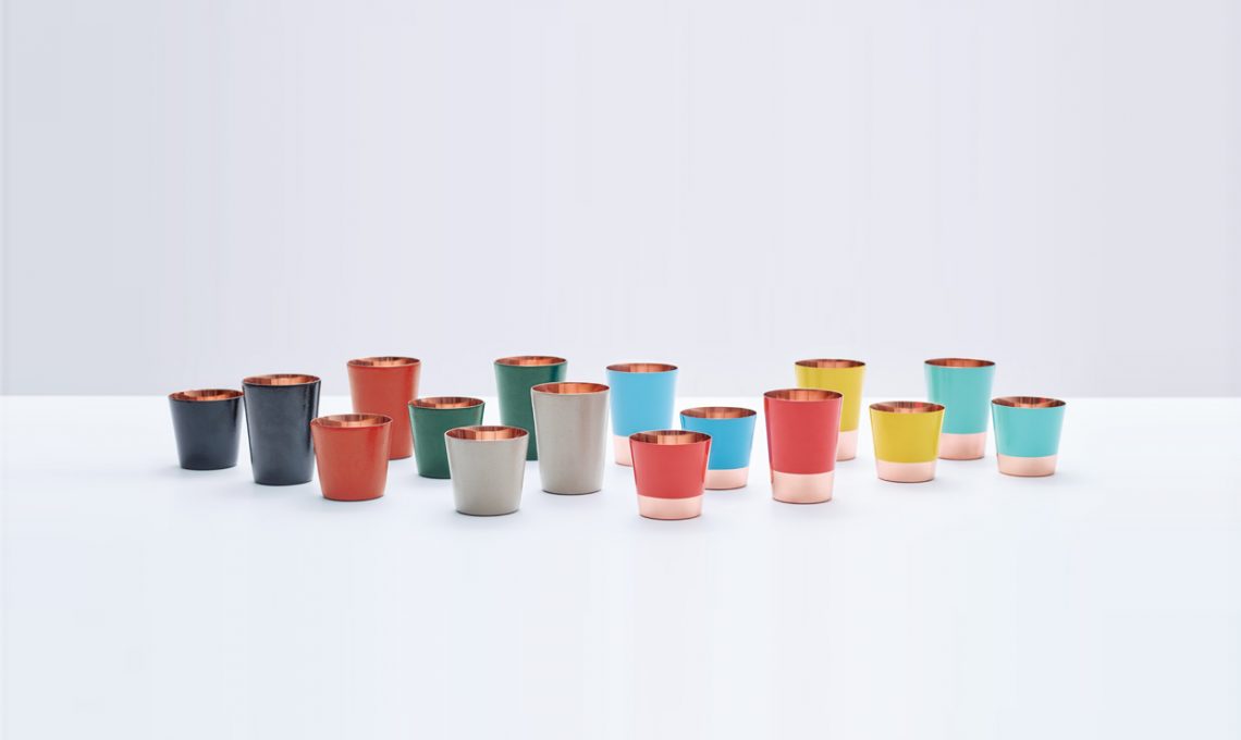 Queste tazze di rame arrivano dal Giappone sono prodotte da un’azienda che sperimenta usi contemporanei per la tradizionale lacca urushi. [raku-wajima.com]