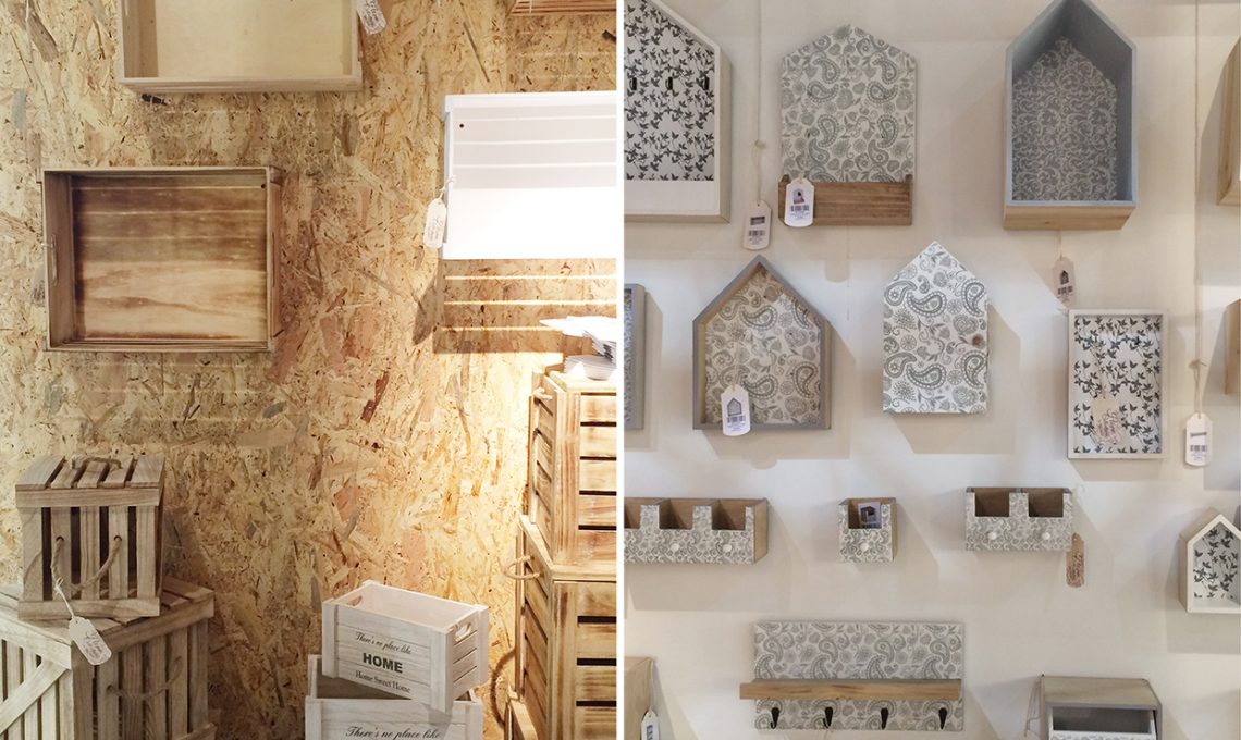 Cassette da usare come contenitori a terra, impilate oppure appese alle pareti - A destra mensole e casette da personalizzare con carte décor. Tutto Vacchetti.
