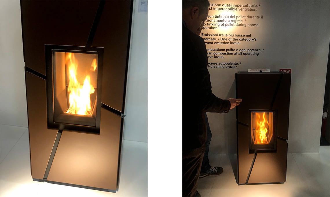 La novità assoluta però è Magnus: si tratta di un monoblocco a pellet su cui hanno studiato una fiamma davvero scenica, alta 40 cm circa, morbida naturale e dalle forme sinuose, praticamente identica alla fiamma del camino a legna.