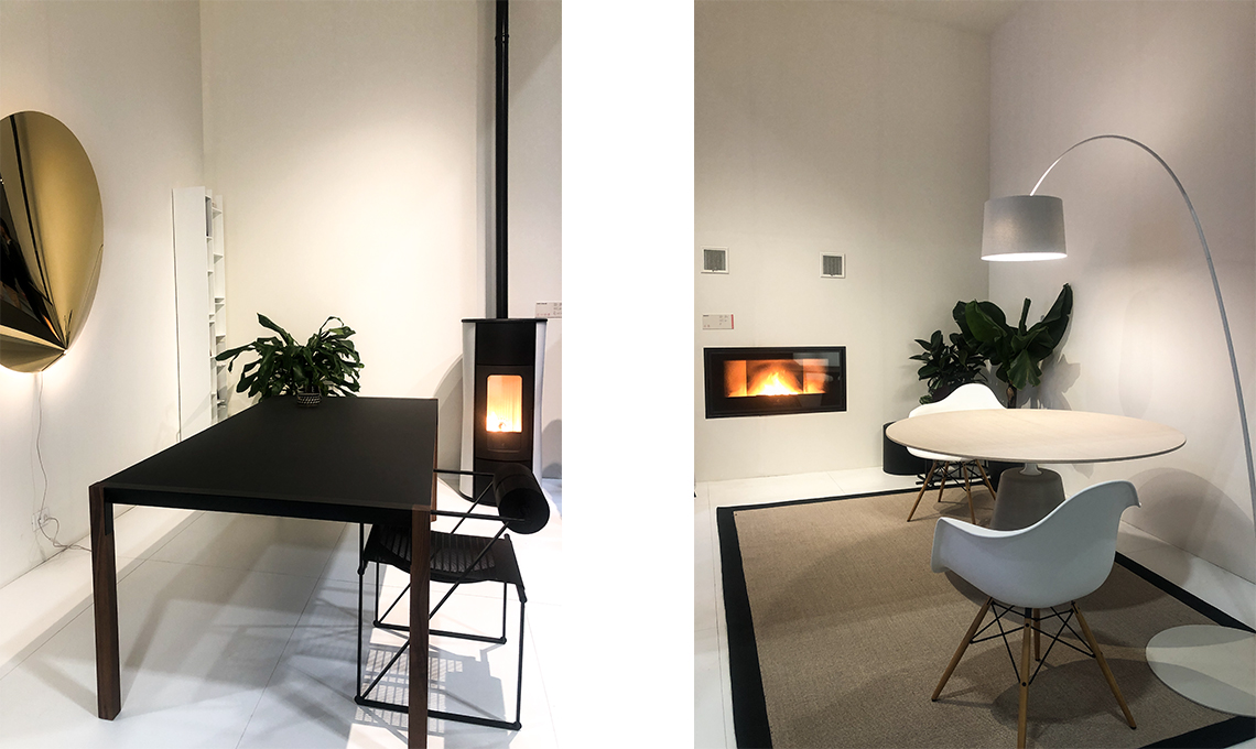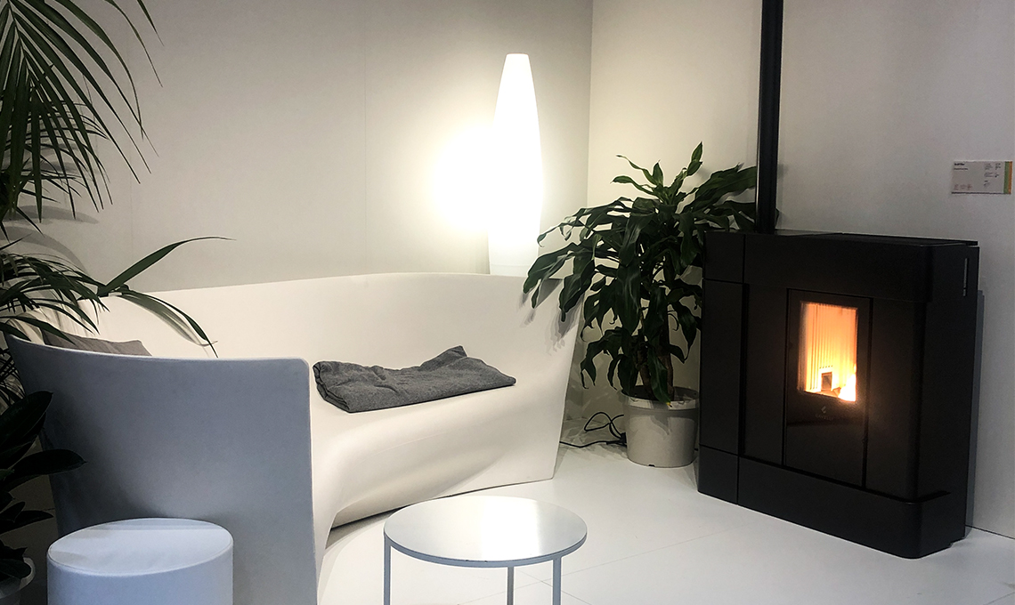 Palazzetti, con la sua attitudine all’innovazione che da sempre caratterizza i suoi prodotti, stupisce per il mix ben riuscito di design, efficienza, bellezza e prestazioni. Tutte qualità che troviamo nei focolari che mostra in fiera, così come negli allestimenti e nelle ambientazioni ricreate all’interno dello stand. Cura nei dettagli, una particolare attenzione a presentare i propri prodotti in soggiorni o situazioni molto simili alle nostre case, e seguendo le tendenze in fatto di home decor e colore. Il prodotto di punto è WT, un eco-monoblocco dotato di tecnologia, che riesce a creare una sintesi perfetta tra prestazioni di altissimo livello e aspetto minimale esterno. Tecnologico e moderno: si semplifica così l’utilizzo del focolare grazie alla possibilità di comandare l’apertura del vetro e la regolazione dell’aria che viene incanalata.