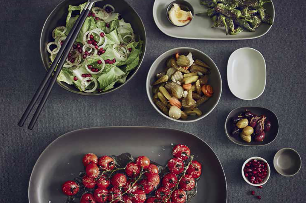 È una serie coordinata, pensata per una tavola amichevole e allegra, da comporre secondo le diverse occasioni: uno spuntino improvvisato tra amici o colleghi di lavoro, una cena a lume di candela, il pranzo della domenica con tutta la famiglia.