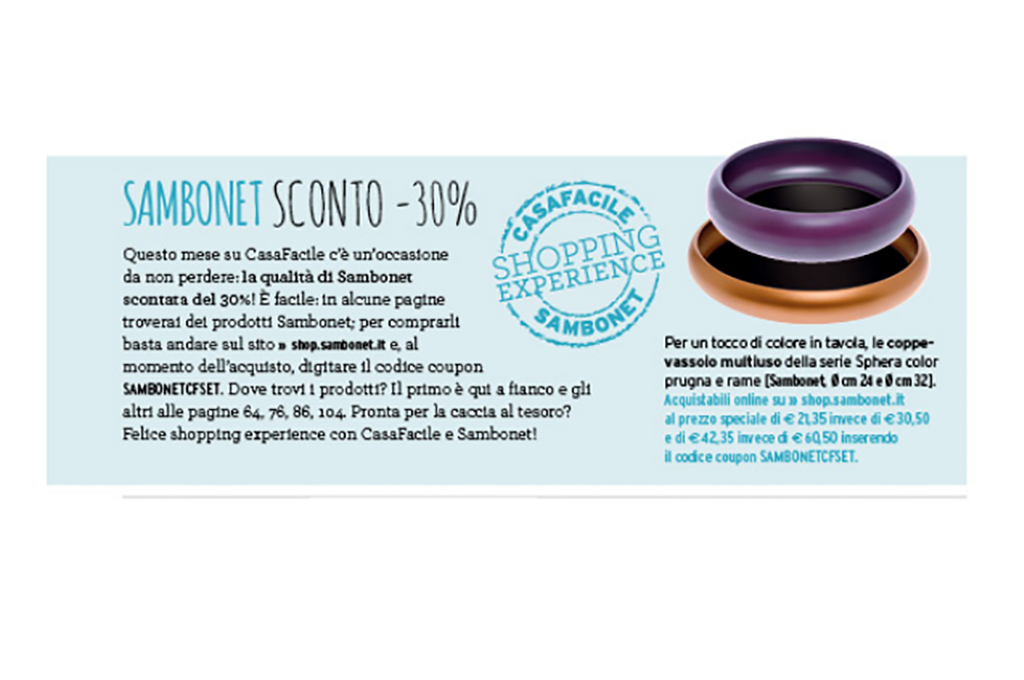 Shopping experience: sul sito www.shop.sambonet.it trovi alcuni prodotti selezionati per te da CasaFacile e Sambonet scontati al 30%!