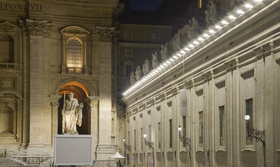 Così, la soluzione è stata progettata e realizzata da OSRAM in stretta collaborazione con la Direzione dei Servizi Tecnici del Governatorato di Città del Vaticano e i 132 proiettori LED installati garantiscono un'illuminazione brillante e uniforme della piazza. L'architettura ne risulta esaltata, grazie all'accentuazione dell'imponente colonnato e delle nuances naturali del marmo. Senza dimenticare l'aspetto green: il nuovo sistema è decisamente sostenibile poiché riduce sensibilmente il consumo di energia e l'inquinamento luminoso. "La moderna tecnologia LED associata al sistema di gestione dell'illuminazione DALI consente di risparmiare circa il 70% di energia", ci ha detto Carlo Bogani, Executive Project Director in OSRAM Italia.