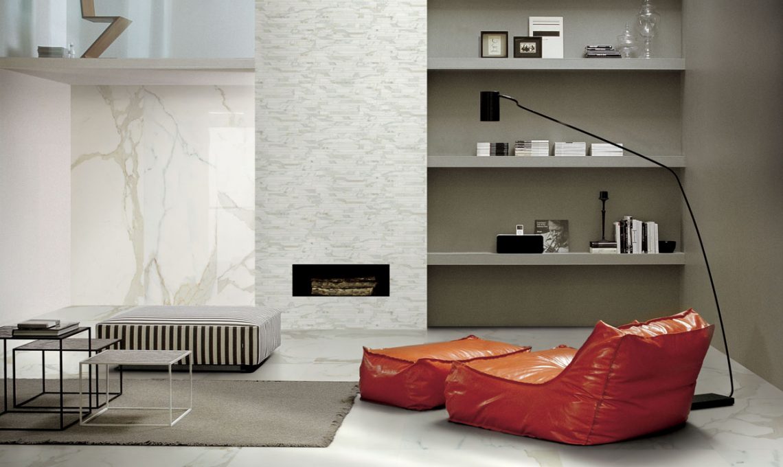Effetto marmo in sei diverse essenze per la serie Antique Marble in grès porcellanato, con formati che vanno da cm 30x60 a cm 80x240. Una collezione che offre differenti finiture, formati e variazioni cromatiche [Cerim - Florim Group].