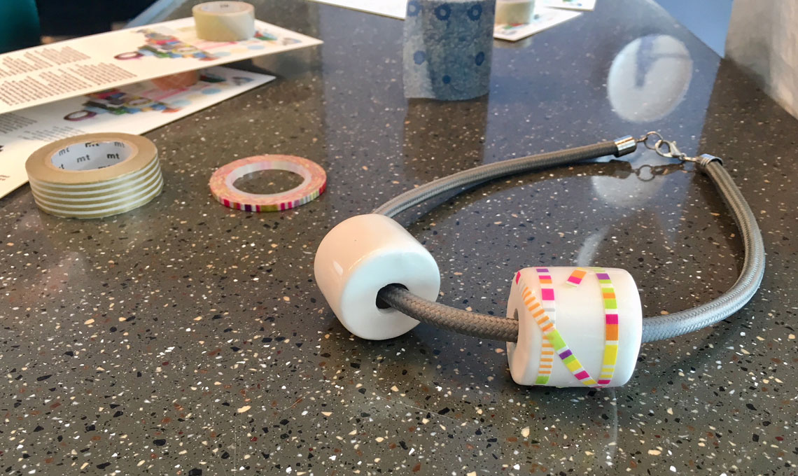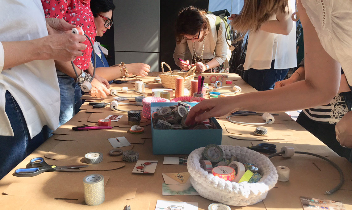 Il pomeriggio è cominciato con il laboratorio di Anabella di My Washi tape che ha seguito i partecipanti nella decorazione di una bellissima collana in ceramica. Interessante l’uso del nuovo supporto da usare insieme ai classici nastri di carta riso. Ogni partecipante ha creato un oggetto unico e originale.