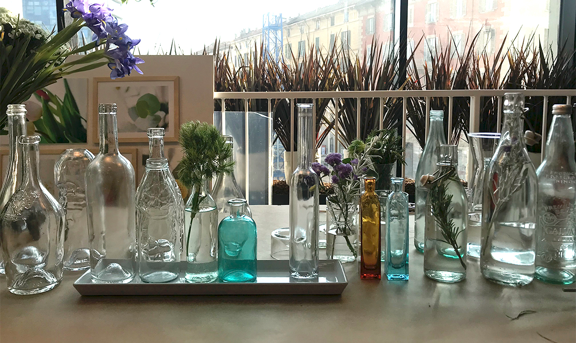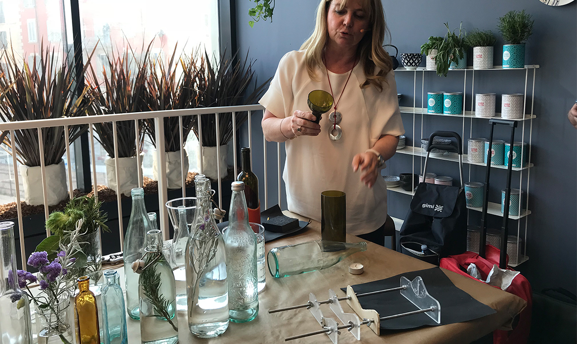 Le partecipanti hanno imparato a decorare la tavola con composizioni floreali riciclando bottiglie in vetro. Ma qui viene il bello: hanno anche imparato a tagliare le bottiglie di vetro attraverso 5 semplici step.
