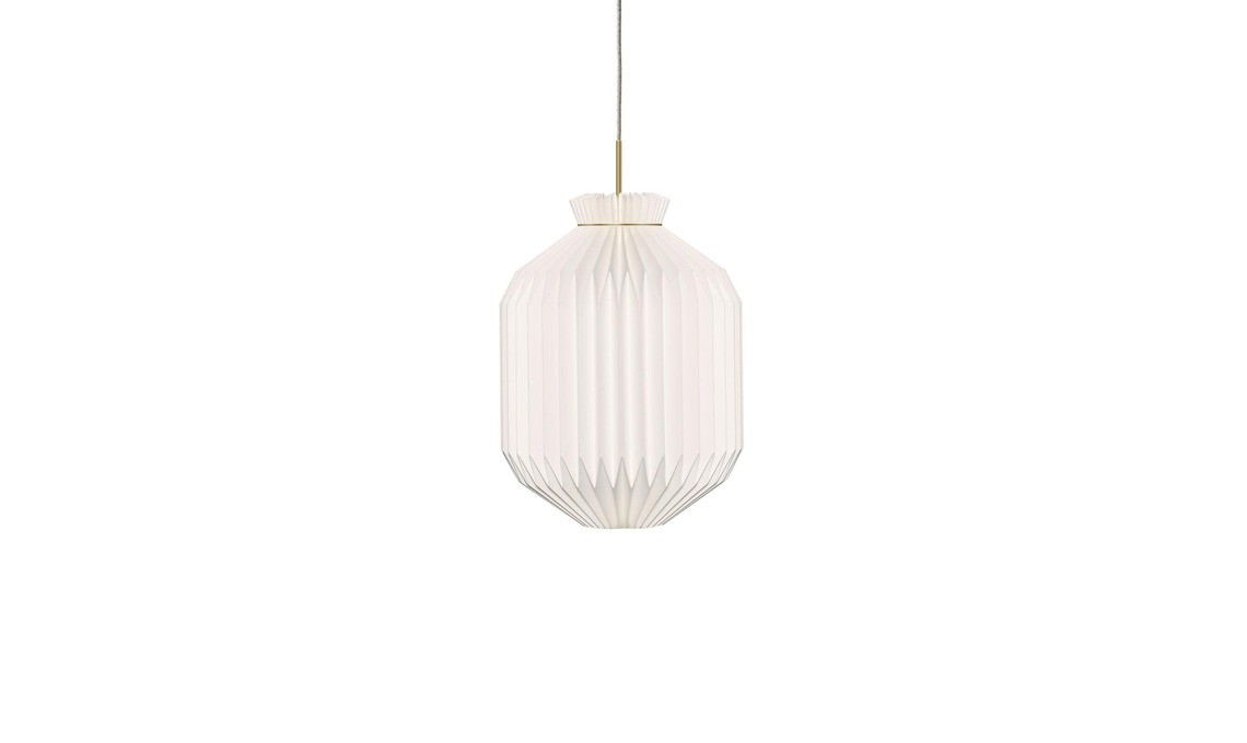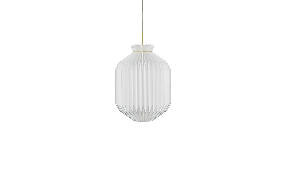 Prodotta interamente in Danimarca, piegata a mano, diffonde perfettamente la luce ed è arricchita da anello e struttura color ottone. Un meraviglioso pezzo di design danese che durerà per molte generazioni!