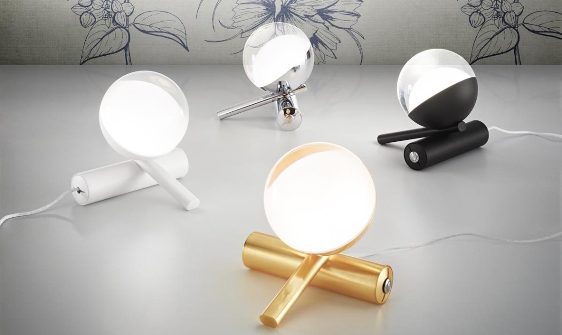 Si fa notare questa piccola lampada ‘gioiello’ dalle finiture oro, cromo, bianco e nero, con un diffusore a sfera che grazie alla satinatura preserva la brillantezza e distribuisce la luce in maniera diffusa ma senza abbagliare. L’intensità della luce si regola dal tasto push-dim perfettamente integrato nel corpo lampada.