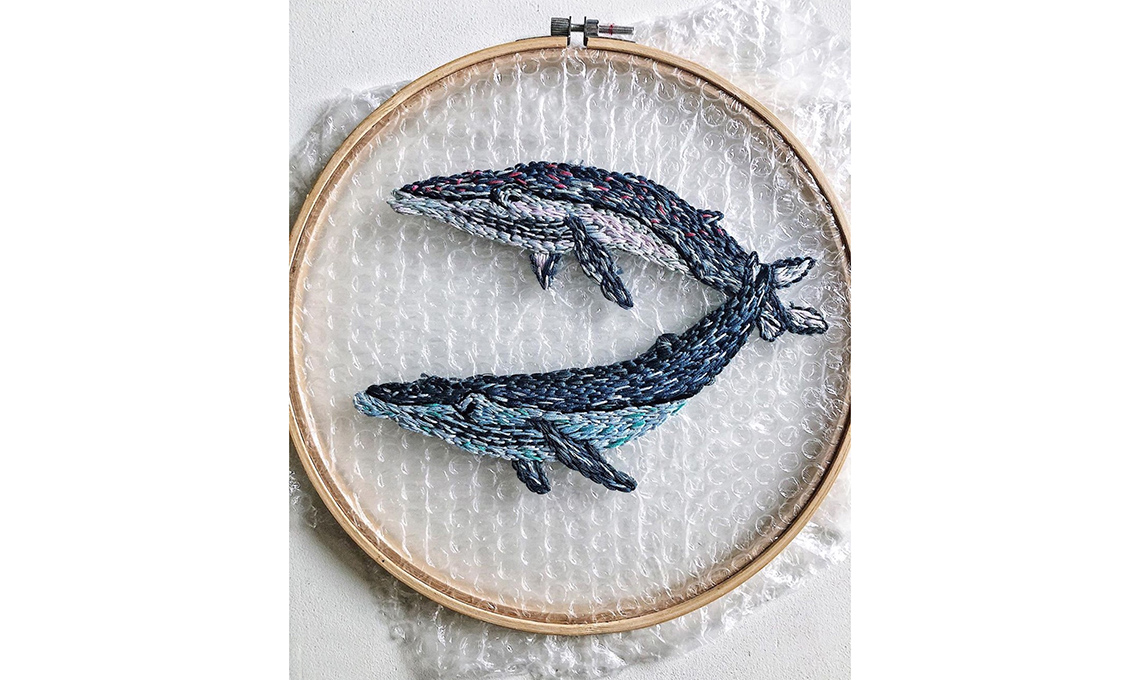 «Immagino balene che nuotano danzando un duetto in un soffice foglio di polietilene a bolle. Con la fantasia si può fare tutto, anche trasformare un brandello di plastica in una piccola poesia trasparente... in attesa di una soluzione eco!» Serena Scuderi @sere_cappelloabombetta