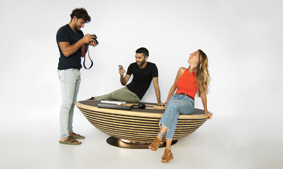 Melting Top, una ‘trottola’ su cui sedersi in tanti e cercare insieme l’equilibrio. In legno stratificato e gomma riciclata, è ecosostenibile e... educativa!