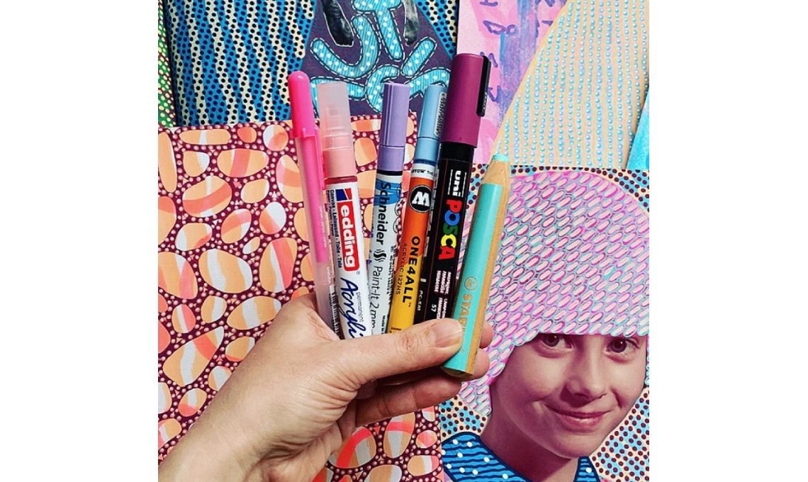 L'artista aiuterà i partecipanti a pianificare una palette di colori e di pattern ideali per realizzare una composizione finale complessa, ma realizzata attraverso la ripetizione di forme astratte semplici. Verranno utilizzati materiali insoliti come la coloratissima carta adesiva giapponese washi tape, stickers e penne acriliche e Naomi condividerà la sua tecnica a livelli, che raggiunge, in totale, tre strati di manipolazione.