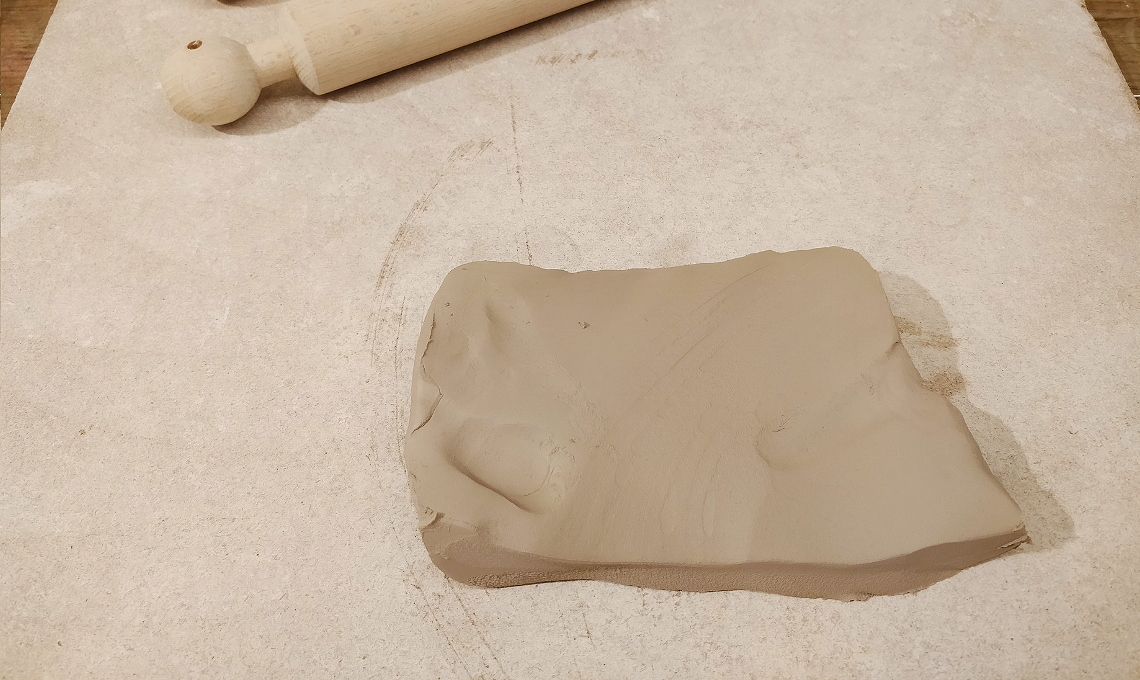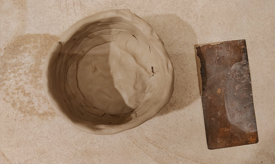 - Si parte da un lastra di argilla stesa con un matterello da cui si ritaglia la forma della base.