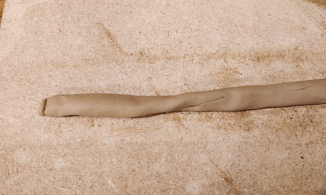 - A questo punto si prendono dei pezzi creta e si fanno rotolare con le mani su di un piano di lavoro fino ad ottenere dei lunghi "bigoli" i c.d colombini. Si posiziona il primo “bigolo” sul margine della nostra base e si esercita una piccola pressione con il pollice e l’indice, mentre l’altra mano lo sorregge e lo guida. Lo scopo è ‘saldare’ il lombrico di argilla lungo tutto il perimetro. Questa operazione viene ripetuta disponendo i bigoli l’uno sull’altro a spirale, fino a raggiungere l’altezza desiderata.