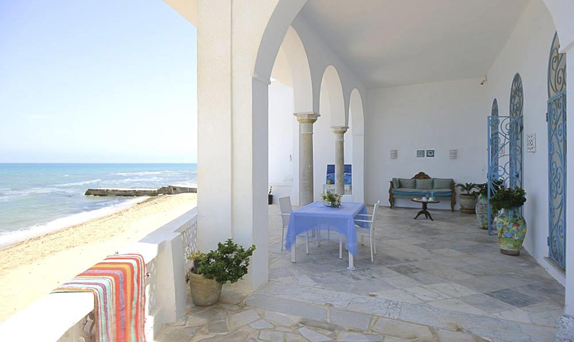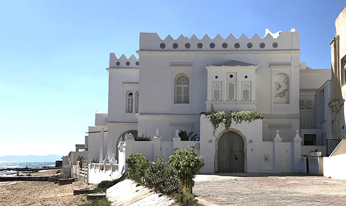 Questa dimora affacciata sulla spiaggia di La Marsa, periferia Nord di Tunisi, fu edificata all’inizio del XX secolo da muratori italiani. Faceva parte di un complesso edilizio molto grande poi suddiviso in tre blocchi, in origine comunicanti tra loro e tutti provvisti di corte interna su cui si affacciavano i vari appartamenti. Alcuni membri della famiglia Beylicale della dinastia degli Husaynidi, soprattutto concubine, la abitavano durante il periodo della calura estiva che investiva la vicina capitale Tunisi.