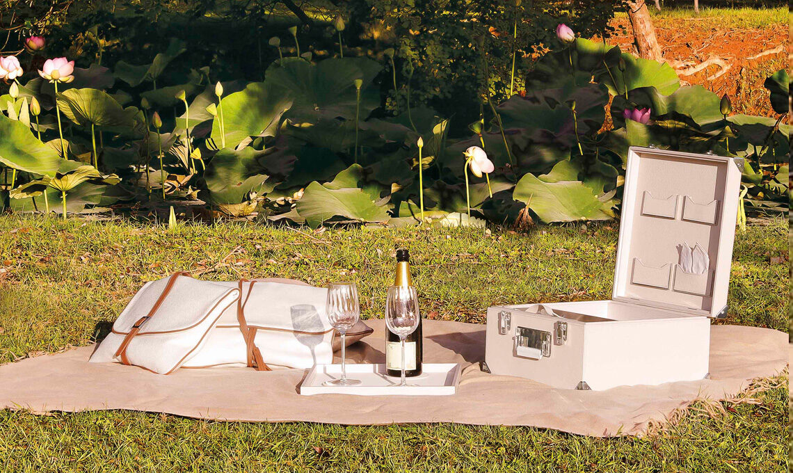 Ludovica Mascheroni firma Le Blanc, un elegante baule Champagne per romantici brindisi: rivestito in pelle, il suo interno è realizzato in pregiata essenza di rovere sbiancato, mentre i dettagli sono in ottone palladio.