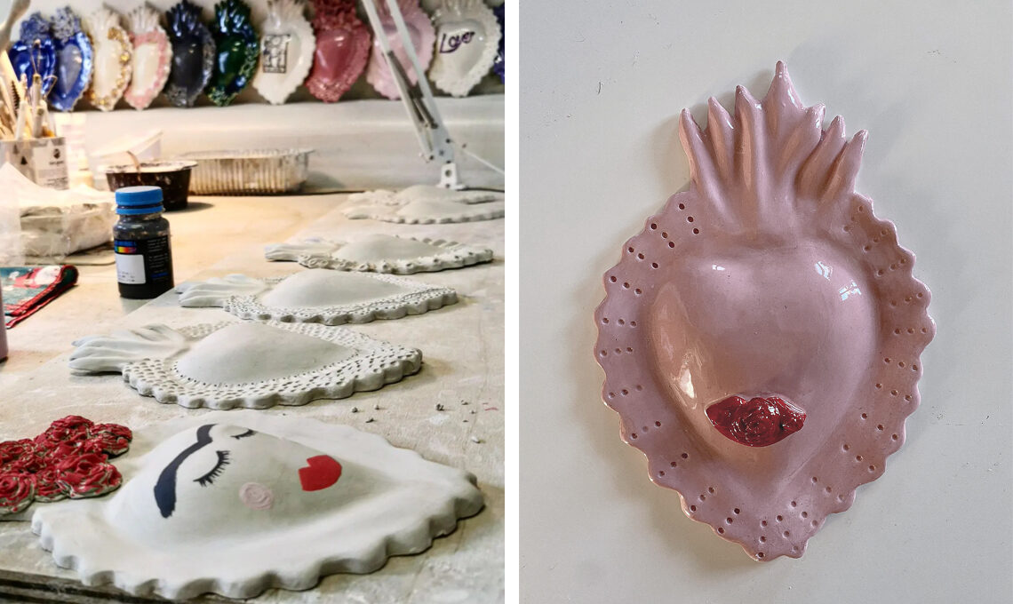 Antonella Freni, in arte Heartista, lavora la ceramica con passione, realizzando a mano cuori sacri, ispirati agli ex voto per grazia ricevuta. A noi piacciono perché sono pezzi unici, belli e imperfetti. Come la vita. E come l’amore.