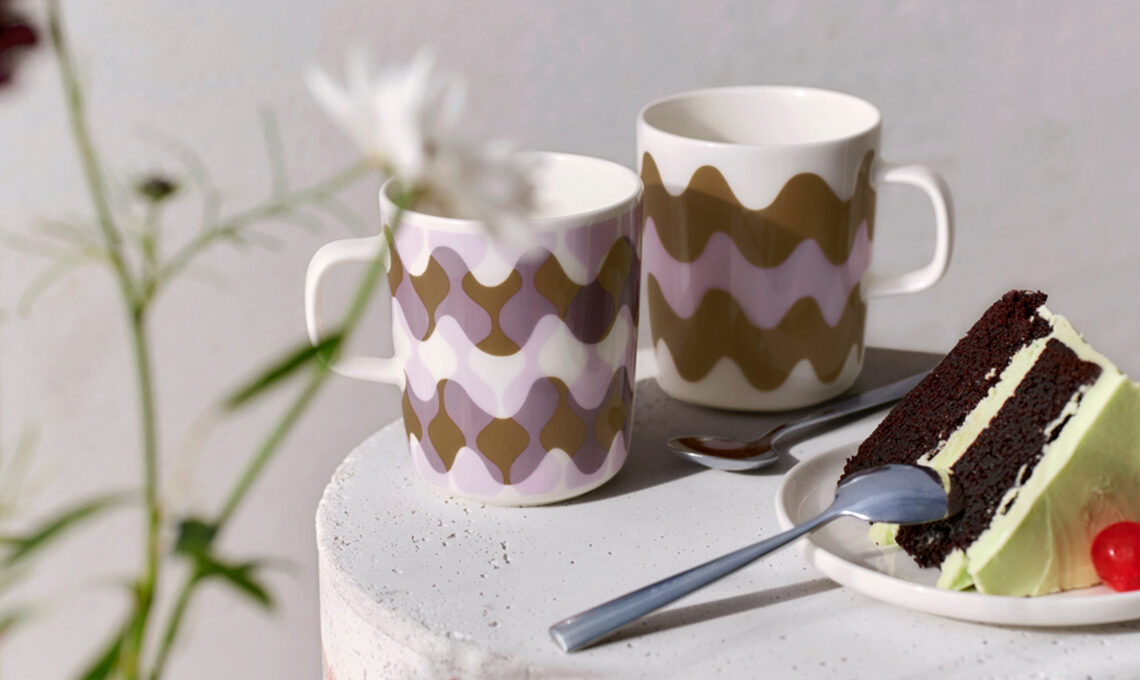 Marimekko per San Valentino ha lanciato una stampa inedita, che fonde insieme le linee ondulate di Lokki con le forme di Pergola: la capsule collection comprende tazze, borse, cuscini e, naturalmente, la stoffa al metro.