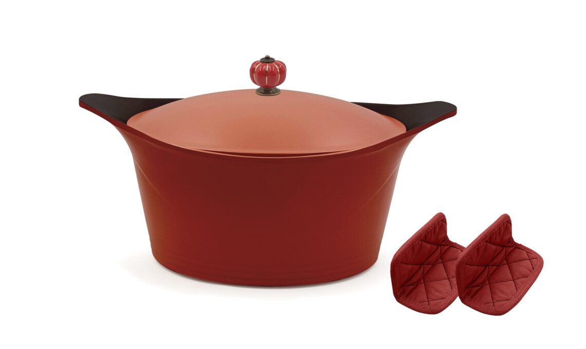 Cocotte Incredibile rossa di COOKUT: multi-funzione, è 4 volte più leggera di una Cocotte tradizionale Antiaderente è ha 8 modalità di cottura. Prodotto sano e privo di sostanze tossiche, PFAS Sostenibile, ecologico ed etico.