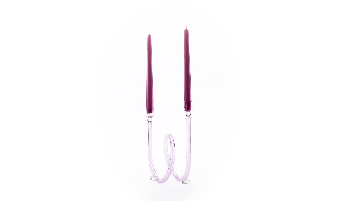 Candelabro Dolcevita di Casarialto: realizzato a mano in vetro soffiato a bocca a Venezia, questo portacandela è creato in vetro borosilicato leggero e colorato.