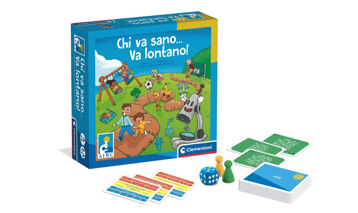 Chi va sano... va lontano! è il gioco per tutta la famiglia che permette di scoprire tante curiosità sul nostro corpo e sul mondo che ci circonda, e di capire l'importanza delle buone abitudini per una vita sana e piena di energia! Con questo gioco Clementoni è al fianco di AIRC: l'azienda ha ideato e donato questo gioco affinchè la Fondazione possa distribuirlo sui propri canali a sostegno della ricerca oncologica. https://shop.airc.it/gioco-clementoni-chi-va-sano-va-lontano