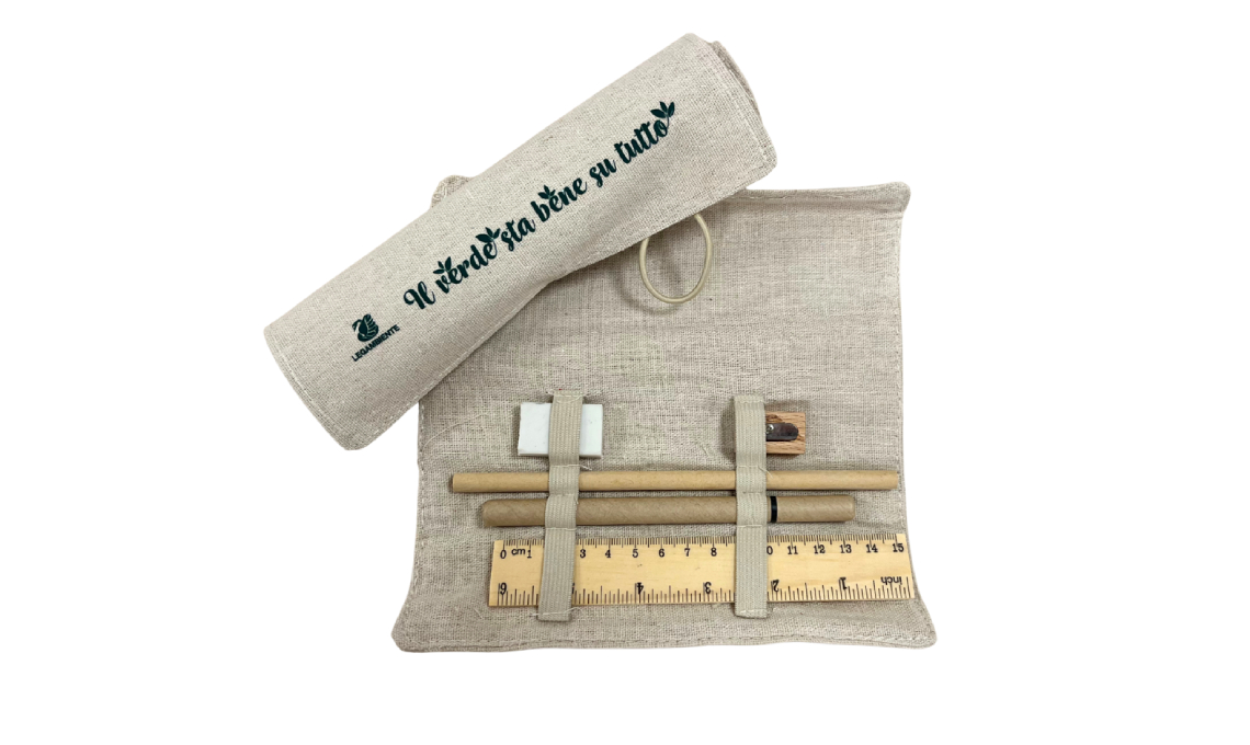 Il verde sta bene su tutto, parola di Legambiente! Regala un originale astuccio in juta e cotone (contiene 5 pezzi dalla finitura naturale: una gomma, un temperamatite, una penna in cartone riciclato, una matita e un righello in legno). https://shop.legambiente.it/prodotto/astuccio-il-verde-sta-bene-su-tutto/