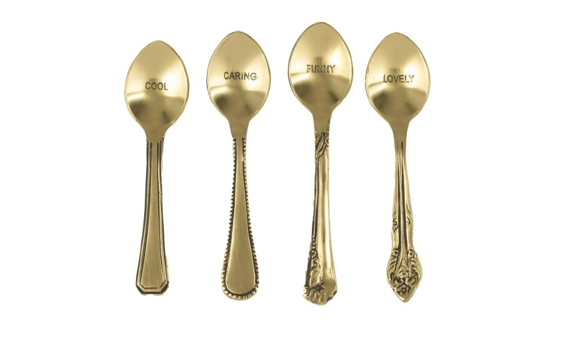 Aggiungi un tocco unico e divertente alla tua tavola con questo set di 4 cucchiaini dorati, ciascuno inciso con una parola speciale: PRETTY, SYMPA, CUTE e CURIOUS. Aiuta Paideia, la Fondazione che si dedica a sostenere la crescita e il benessere dei bambini con disabilità e delle loro famiglie. https://shop.fondazionepaideia.it/prodotto/set-4-cucchiaini-dorati/