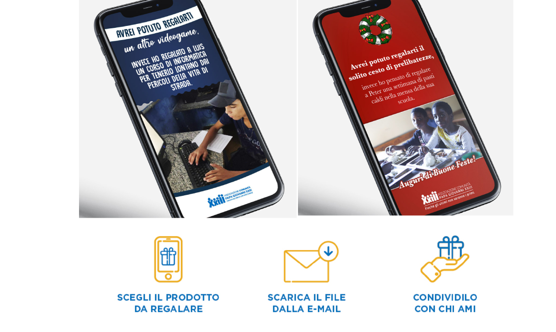 Ecco il senso della campagna di regali della Comunità Papa Giovanni XXIII fondata da don Oreste Benzi. Puoi regalare un mese di biberon di latte per un bimbo malnutrito, una busta della spesa con generi alimentari utili a cucinare un pasto per tutta la famiglia, una capretta che garantisce l’avvio di una piccola attività ad una mamma che così può sfamare i propri figli.