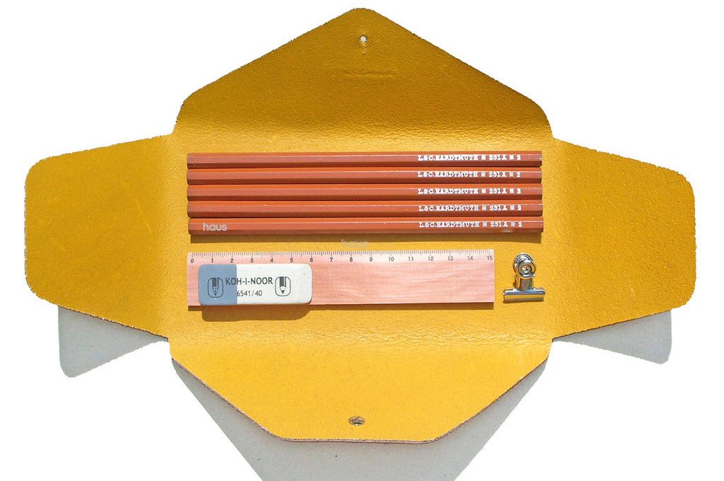 Ha un’aria vintage l’astuccio in cuoio che si chiude a busta [Present & Correct, cm 20x10 €29]