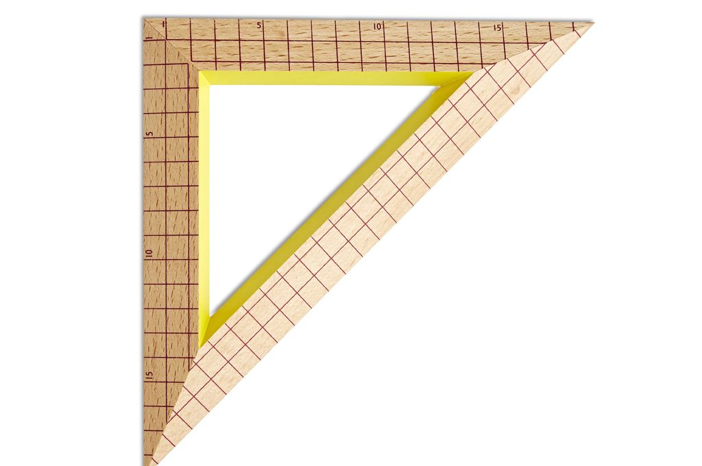 Classica, per il disegno tecnico, la squadra in legno con decoro a quadretti [Hay, cm 18,5x18,5 €18]