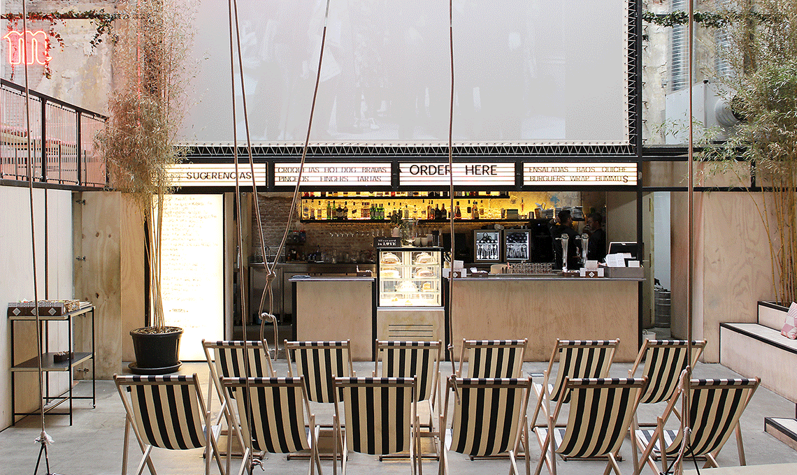 L’idea di Plantea, lo studio che ha curato il progetto, è stata quella di mantenere il concept originale dello spazio e integrarlo con altre attività e funzioni. Oggi, all’interno dell’edificio è possibile guardare un film come si faceva in passato e in più vivere un’esperienza a trecentosessanta gradi: qui infatti ci si può rilassare, si possono mangiare tapas, incontrare amici, ascoltare concerti o visitare una mostra.