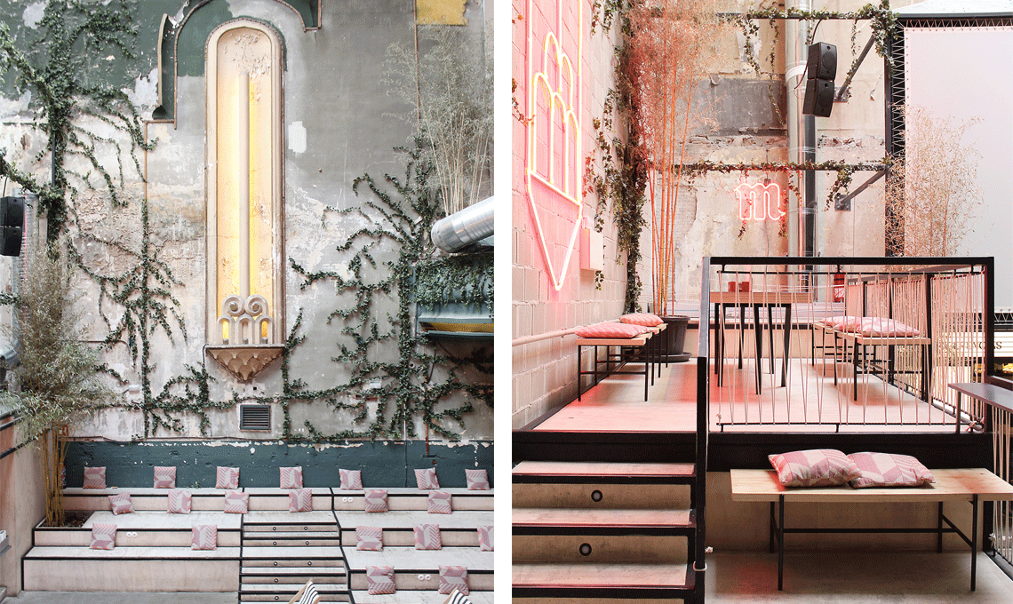 Troverete poltroncine in velluto per accomodarvi davanti al grande schermo, ma anche altalene, luci a led rosa shocking, amache e sdraio a righe bianche e nere. Tirate fuori i vostri smartphone perché la foto perfetta per Instagram è da scattare proprio qui!