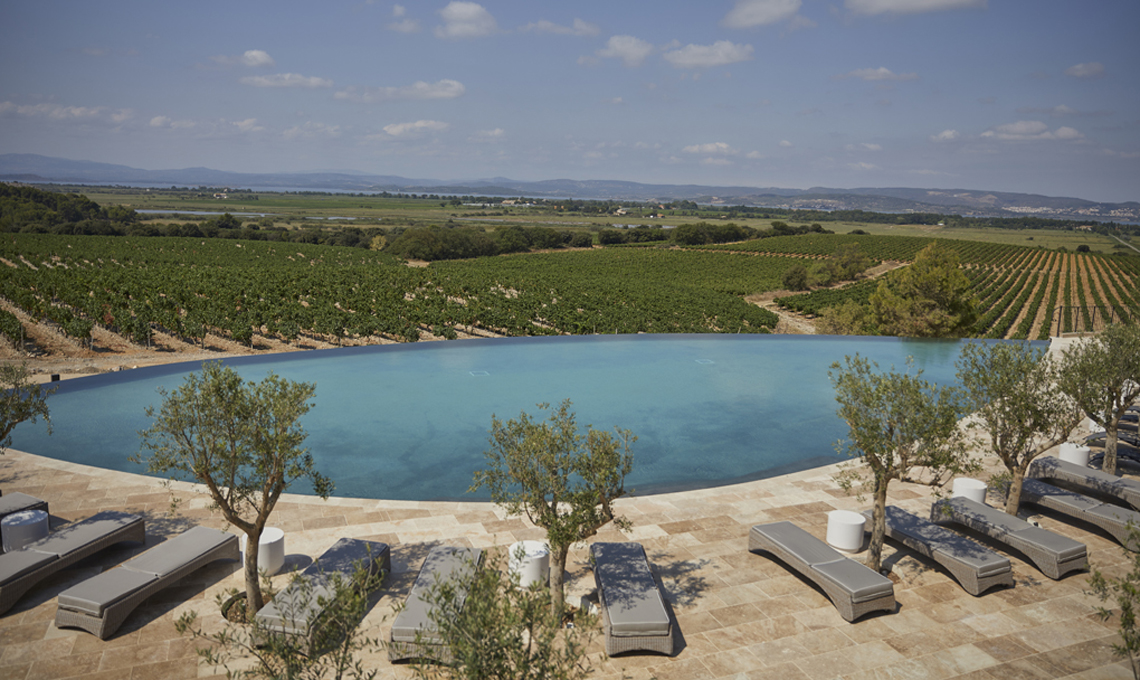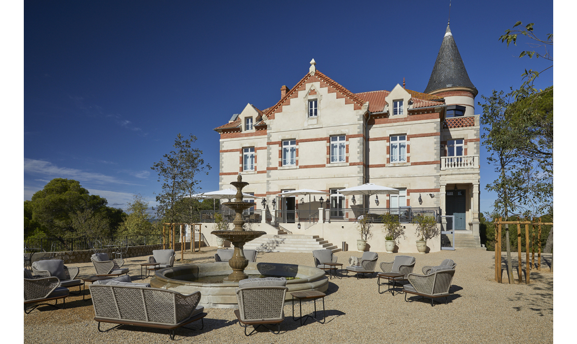 Château Capitoul è una lussuosa tenuta nel sud della Francia, nei dintorni di Narbonne, che si estende dalla laguna della Languedoc fino al Mar Mediterraneo: 100 ettari di paesaggi incantevoli, con 8 eleganti camere d'albergo, magnifiche suite e 44 ville private ispirate al patrimonio nobile e agricolo della tenuta, con grandi terrazze e vista mozzafiato sulla laguna e sui vigneti.