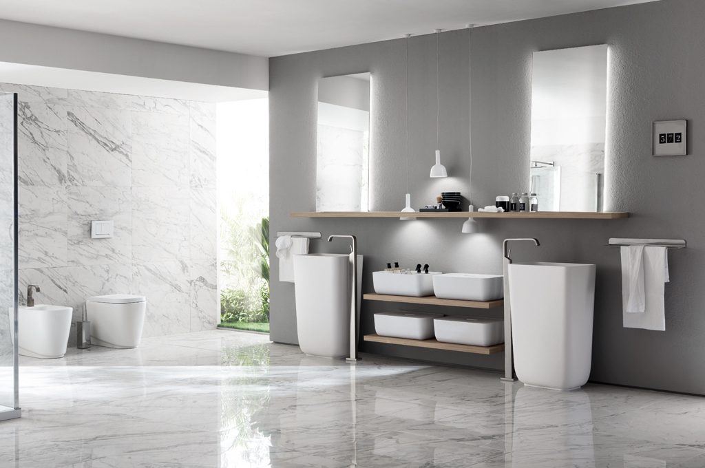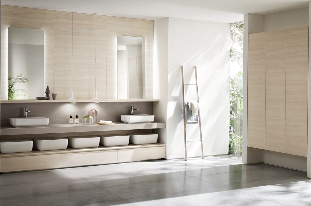 Nel sistema bagno il contenitore viene scelto sia come sistema alternativo ai pensili sia per disegnare il lavabo, disponibile nelle varianti da appoggio, incasso e freestanding.