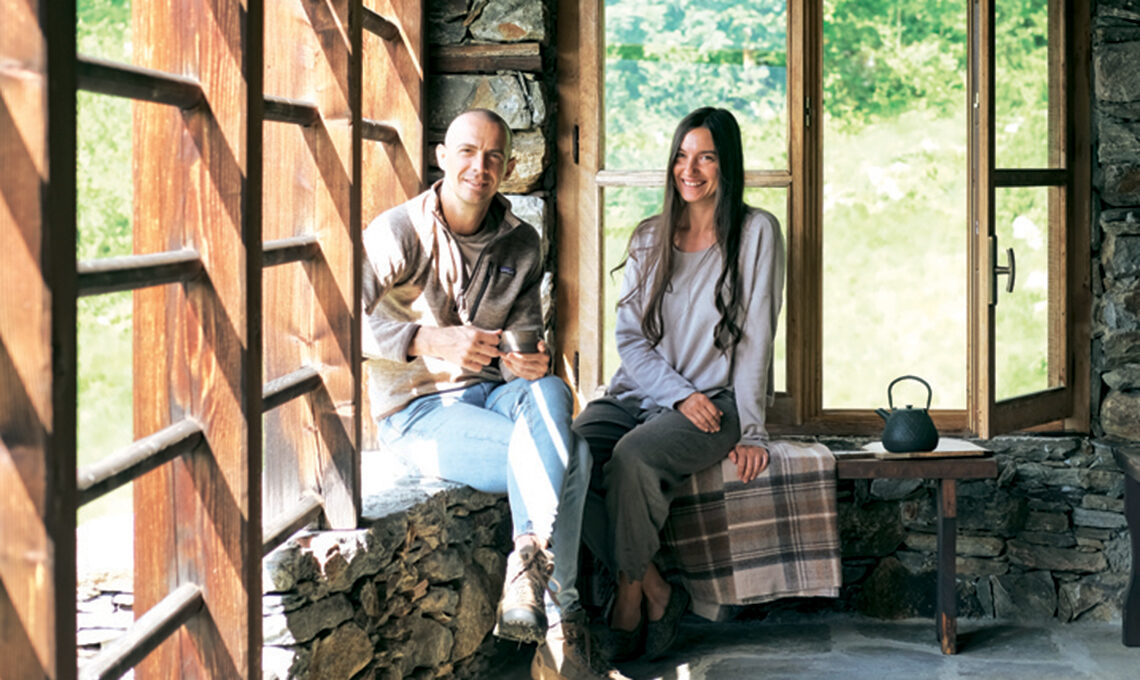 «Ali per andare e radici per tornare» è la risposta a tutti quelli che chiedono a Marta e Cristian di raccontarsi. «Siamo cresciuti tra boschi e montagne, le nostre famiglie hanno origini montanare. Ma poi abbiamo viaggiato tanto, fino ai confini del mondo. È stato al ritorno dall’Alaska, dal contatto con quella natura incontaminata, che abbiamo deciso di investire risparmi e tempo libero in un progetto di ampio respiro: un alpeggio nelle terre alte della Valsesia. Le nostre baite di pietra e legno sono diventate la materia di un sogno da costruire insieme, giorno dopo giorno. E anche da condividere. La nostra è un’idea di ospitalità come immersione nella natura, ma anche di reading letterari, corsi di foraging e molto altro. Qui ci sono tanti libri, c’è il silenzio accanto al caminetto e una tazza calda tra le mani, il profumo di fiori selvatici, di muschio e pino... E sulla porta uno zaino sempre pronto».