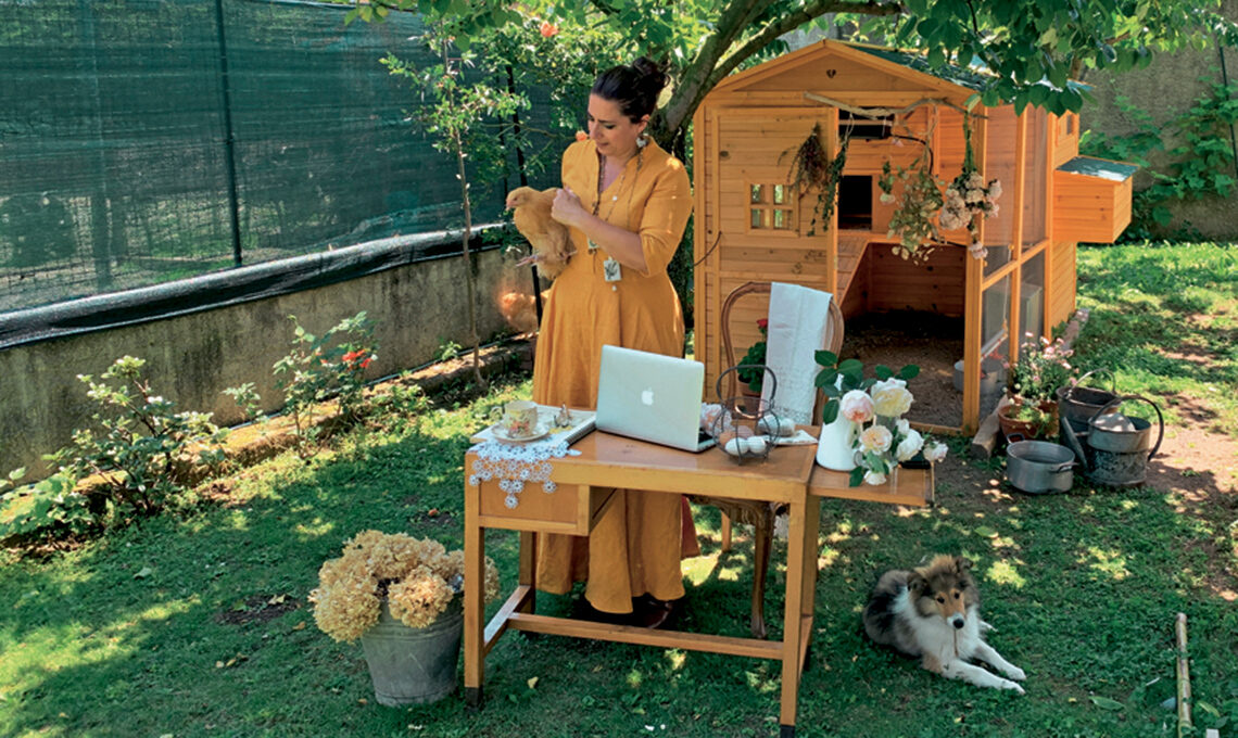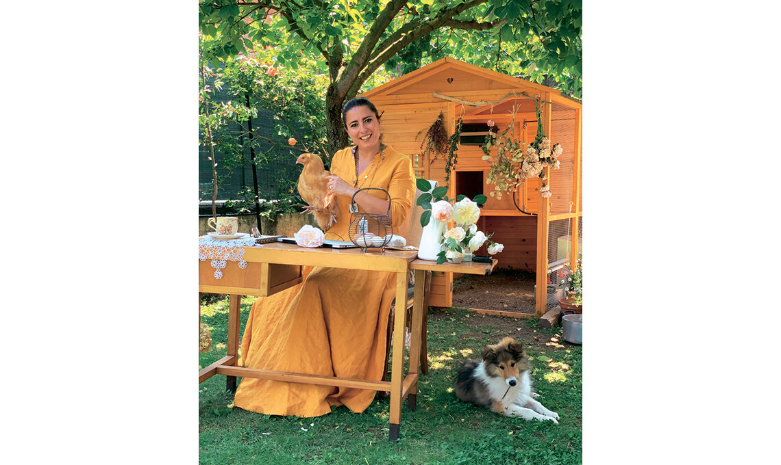 • I pollaio è glam: cosa c’è di più bello che raccogliere l’uovo dal nido? È c’è persino un piccolo studio open air per lavorare vicino alle galline, con Stella il collie che sorveglia...