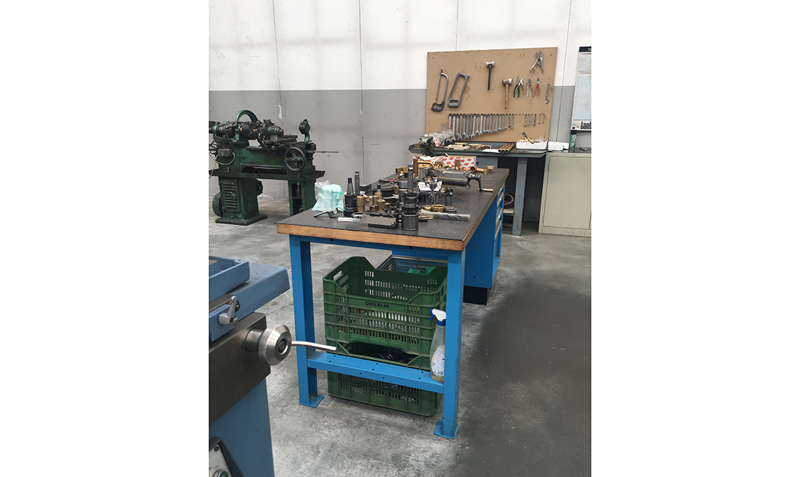 Fonderia: durante questa fase vengono svolte le attività che permettono di ottenere i corpi grezzi dei nostri rubinetti. Il primo processo riguarda la creazione di cosiddette anime che saranno utilizzate per ottenere i fori nella fusione, cioè le parti che non devono essere riempite dal metallo liquido (ottone fuso). Le anime sono formate da terra o sabbia mescolata ad agglomerati formati con uno stampo in negativo detto cassa d'anima. Il secondo passaggio consiste nella creazione delle conchiglie ovvero lo stampo dentro cui verrà colato il metallo (ottone fuso).