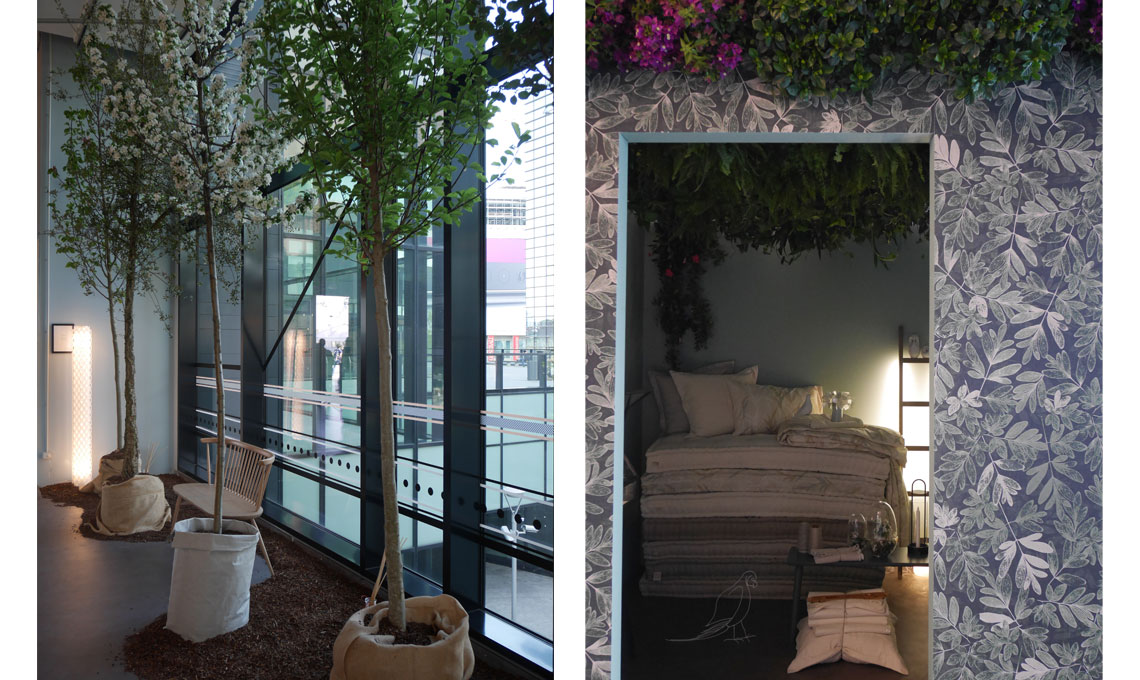 All'ingresso si entra nel mondo dell'immaginazione grazie alla Wunderkammer, una camera delle meraviglie con una esposizione di oggetti d'arte e di design selezionati dalle stylist tra artisti e aziende artigianali. La green room, ricavata in uno spazio raccolto, con un vero e proprio tetto fatto di piante verdi ricadenti, invita invece al riposo e al relax. Sette materassi impilati ricordano un mondo fiabesco, reso ancor più scenografico dalle carta da parati di LondonArt che ricopre l' esterno della stanza e dell'ingresso, dove le lampade sospese di Slamp formano tanti fiori luminosi.