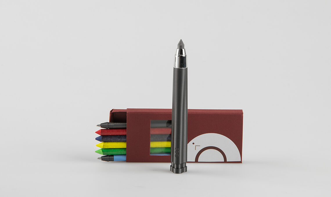 Oggi Ego.M, utilizzando la stampa 3D e il grafene (uno strato monoatomico di carbonio) come materiale principale, presenta una serie di accessori a completamento del set: il matitone, o matita da cantiere, con refil per penna a sfera, pastelli in cera colorata ed evidenziatori in cera naturale; set per acquarelli composto da pennello, colori e vaschetta per acqua e mescita; Trilo-Bym e Trilo-Bym XL, due atelier portatili per ospitare lead grafite, pastelli ed evidenziatori in due formati.