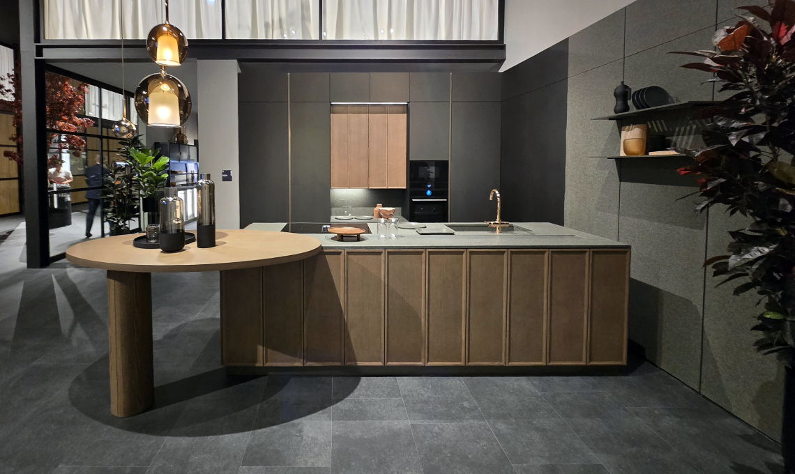 La caratteristica distintiva di Poetica è la lavorazione dell'anta, con un telaio sottile in frassino e un pannello centrale impiallacciato. L'apertura con gola Round "intermedia" e le ante piane a tutta altezza per le colonne conferiscono un aspetto moderno. Le boiserie Vertical System completano l'eleganza del design.