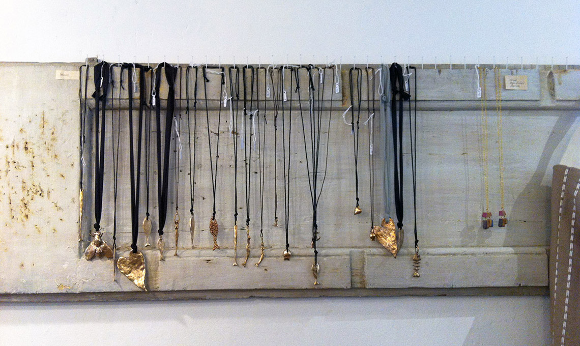 Anita Russo realizza e vende le sue ceramiche fatte a mano: stoviglie, mini-vasi, lampadari, gioielli ma anche set da bagno. E poi, tante borse di tessuto con inserti in ceramica, dipinti, mobili ad alto tasso creativo.
