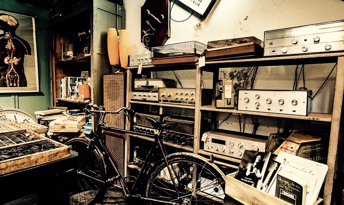 Specializzato nella vendita e nel noleggio di arredi vintage e oggetti di modernariato, a due passi dal Duomo. Sedie e tavoli in formica, forme di scarpe e cappelli, giochi di latta, insegne luminose, ventilatori Anni ’50... E poi mostre, degustazioni, eventi artistici, défilé, musica live: tutto frutto dell’estro di Ubaldo, vulcanico proprietario.