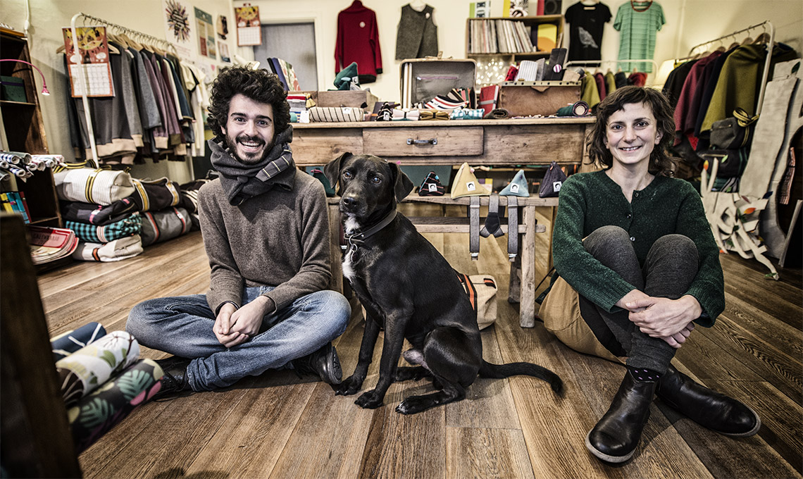 Giulia ed Enzo gestiscono questo negozio/atelier in cui, in un tripudio di colori. Si trovano quaderni, astucci, borsoni, abiti e tanto altro. Lei si dedica al lato creativo, lui si occupa anche della produzione dei quaderni. Ogni prodotto è assolutamente originale, coloratissimo e rigorosamente fatto a mano!