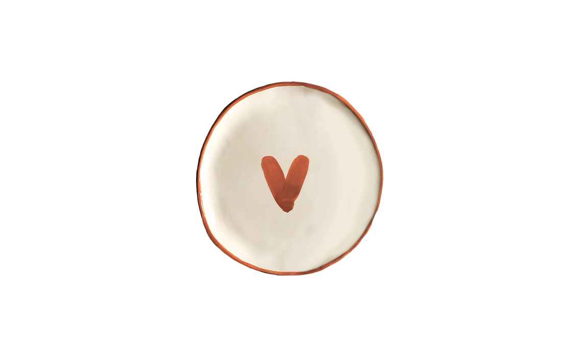 - Piattino cuore in terra bianca con engobbi colorati