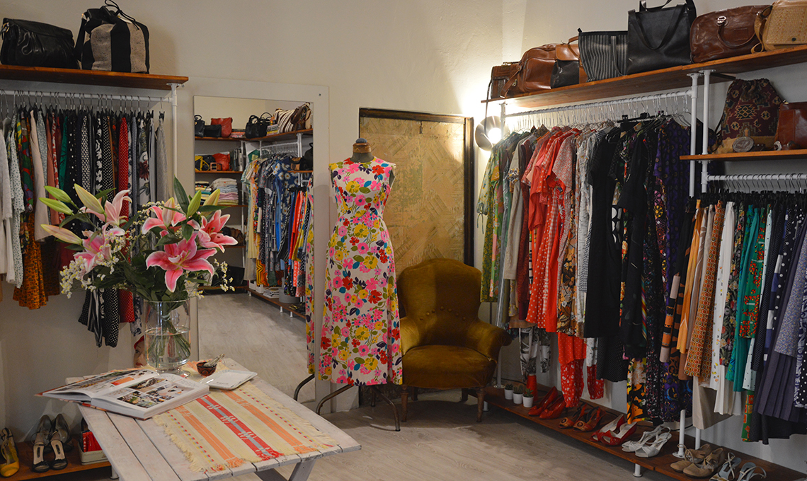 Elisa, che ha un passato da stylist, seleziona abiti e accessori vintage per il suo negozietto sotto i portici. Propone outfit originali che arricchisce con accessori di giovani designer e makers bolognesi. Suo il progetto d’arredo DIY della boutique.