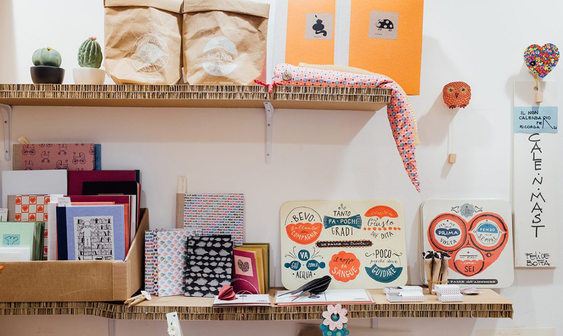 Un negozio microscopico in cui non si smetterebbe mai di frugare tra agende, timbri e biglietti stampati a mano.