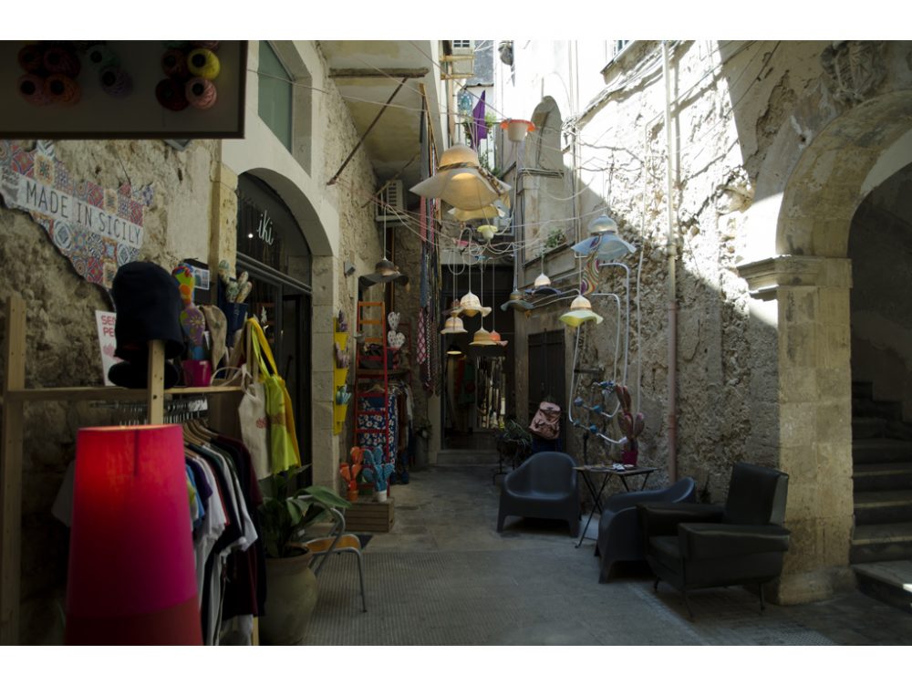 c’è una bottega in cui la proprietaria cuce vestiti sotto gli occhi dei clienti. Parte dello spazio è condiviso con artigiani che ruotano a turno. Trovi gioielli, borse, oggetti décor: 100% handmade italiano.